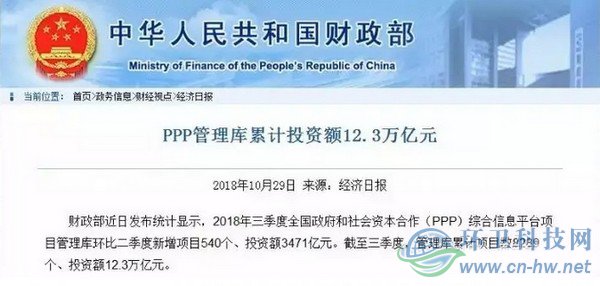 財(cái)政部近日發(fā)布統(tǒng)計(jì)顯示,2018年三季度全國(guó)政府和社會(huì)資本合作(PPP)綜合信息平臺(tái)項(xiàng)目管理庫(kù)環(huán)比二季度新增項(xiàng)目540個(gè)、投資額3471億元。截至三季度,管理庫(kù)累計(jì)項(xiàng)目數(shù)8289個(gè)、投資額12.3萬億元。 財(cái)政部PPP中心介紹,各地繼續(xù)加強(qiáng)PPP項(xiàng)目規(guī)范發(fā)展,持續(xù)清理不合規(guī)項(xiàng)目。三季度管理庫(kù)共清退項(xiàng)...