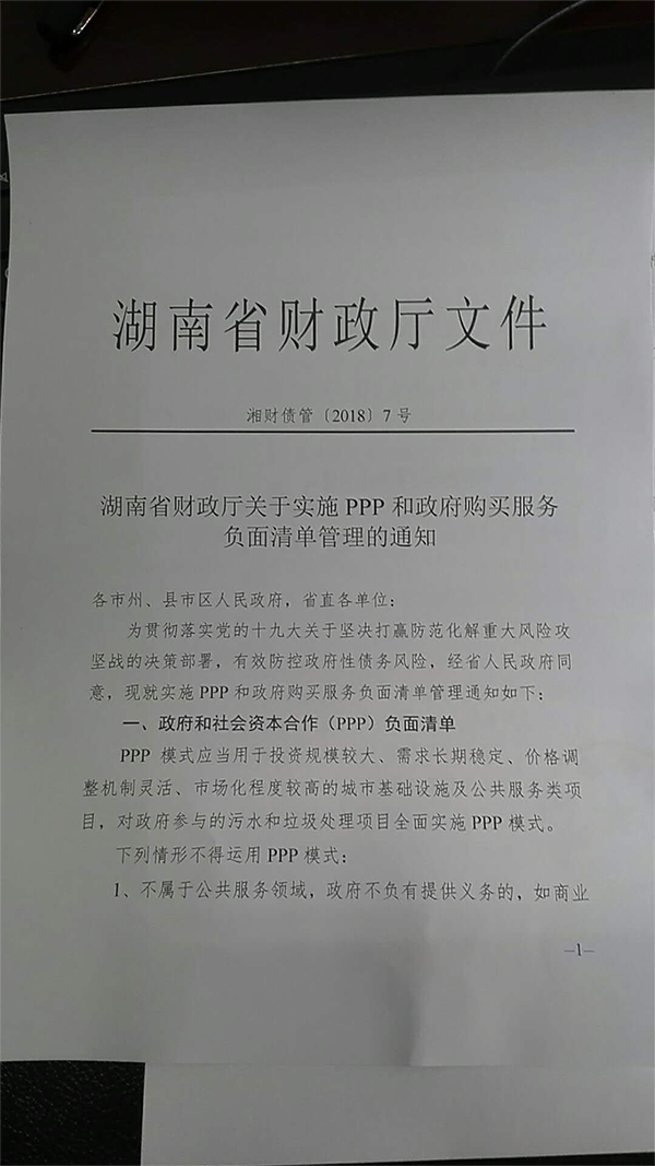 2017年年末,《關(guān)于規(guī)范政府和社會(huì)資本合作(PPP)綜合信息平臺(tái)項(xiàng)目庫(kù)管理的通知》》(財(cái)辦金〔2017〕92號(hào))及《關(guān)于加強(qiáng)中央企業(yè)PPP業(yè)務(wù)風(fēng)險(xiǎn)管控的通知》(國(guó)資發(fā)財(cái)管〔2017〕192號(hào))等系列政策文件出臺(tái),業(yè)界解讀認(rèn)為PPP進(jìn)入從起飛轉(zhuǎn)向平飛的新階段。PPP運(yùn)營(yíng)受到高度關(guān)注。近日網(wǎng)傳湖南省財(cái)...