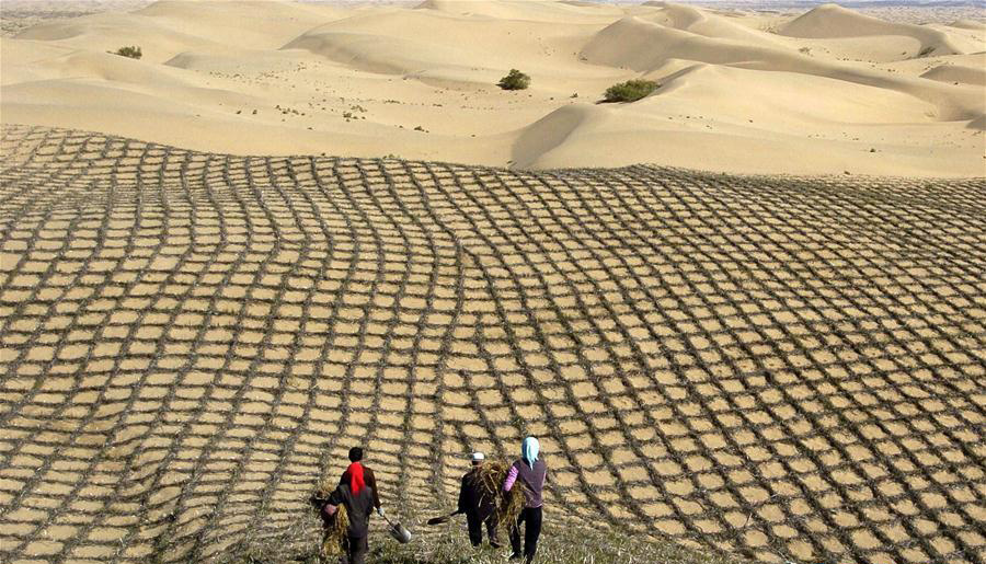 2007年10月19日 寧夏靈武市白芨灘國家級(jí)自然保護(hù)區(qū)職工扎草方格固沙。為了阻擋沙漠前進(jìn)的腳步,毛烏素沙漠西南邊緣成立了靈武市白芨灘防沙林場(chǎng)。經(jīng)過三代治沙人不懈地努力,植被覆蓋率已由最初的20%提高到如今的逾40%。2014年7月14日 寧夏彭陽縣效果良好。據(jù)了解,寧夏中部干旱帶及南部山區(qū)開展生態(tài)...