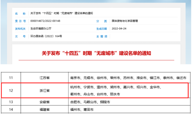 浙江省所有設(shè)區(qū)市進(jìn)入國(guó)家“十四五”時(shí)期“無(wú)廢城市”建設(shè)名單,實(shí)現(xiàn)“滿(mǎn)堂紅”