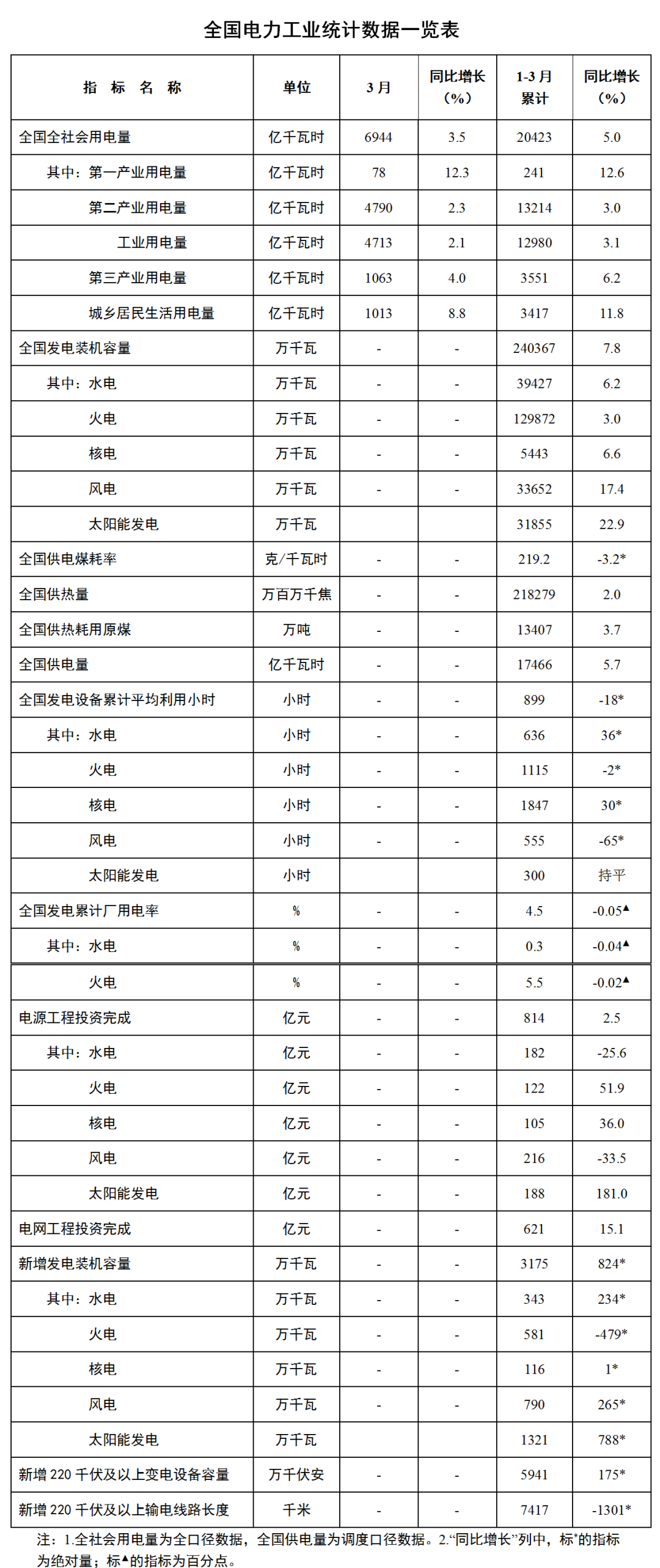 國家能源局發(fā)布1-3月份全國電力工業(yè)統(tǒng)計(jì)數(shù)據(jù) 太陽能發(fā)電裝機(jī)同比增長22.9%