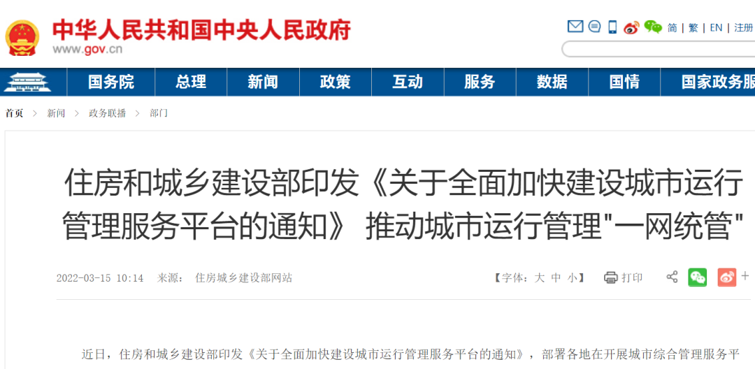 近日,住房和城鄉(xiāng)建設(shè)部印發(fā)《關(guān)于全面加快建設(shè)城市運(yùn)行管理服務(wù)平臺的通知》,部署各地在開展城市綜合管理服務(wù)平臺建設(shè)和聯(lián)網(wǎng)工作的基礎(chǔ)上,全面加快建設(shè)城市運(yùn)行管理服務(wù)平臺,推動城市運(yùn)行管理“一網(wǎng)統(tǒng)管”。 通知指出,建設(shè)城市運(yùn)管服平臺,是貫徹落實(shí)習(xí)近平總書記重要指示批示精神和黨中央、國務(wù)院決策部署的重要舉措...