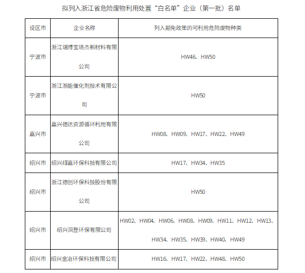 關(guān)于擬列入浙江省危險(xiǎn)廢物利用處置“白名單”企業(yè)(第一批)的公示 根據(jù)《國(guó)務(wù)院辦公廳關(guān)于印發(fā)強(qiáng)化危險(xiǎn)廢物監(jiān)管和利用處置能力改革實(shí)施方案的通知》(國(guó)辦函〔2021〕47號(hào))、《關(guān)于印發(fā)〈長(zhǎng)江三角洲區(qū)域固廢危廢利用處置“白名單”和“黑名單&rdq...