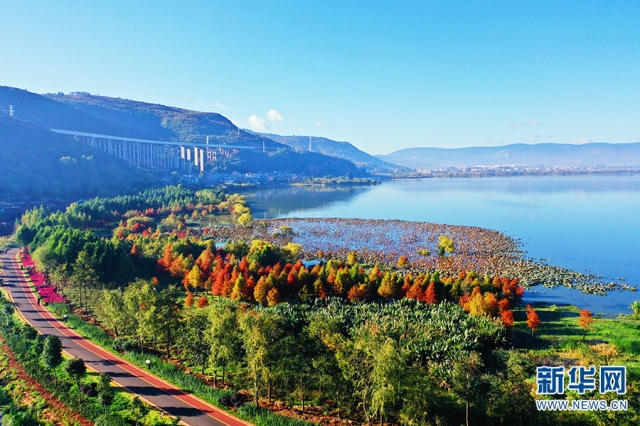 星云湖東岸的中山杉蔚然成林(11月19日攝)。新華網(wǎng)發(fā)(江川區(qū)融媒體中心 供圖) 星云湖東岸一棵棵挺拔的中山杉佇立于水面之上。(11月19日攝)。新華網(wǎng)發(fā)(江川區(qū)融媒體中心 供圖) 星云湖西岸的中山杉豐富了沿岸植物種群。(11月19日攝)。新華網(wǎng)發(fā)(江川區(qū)融媒體中心 供圖)