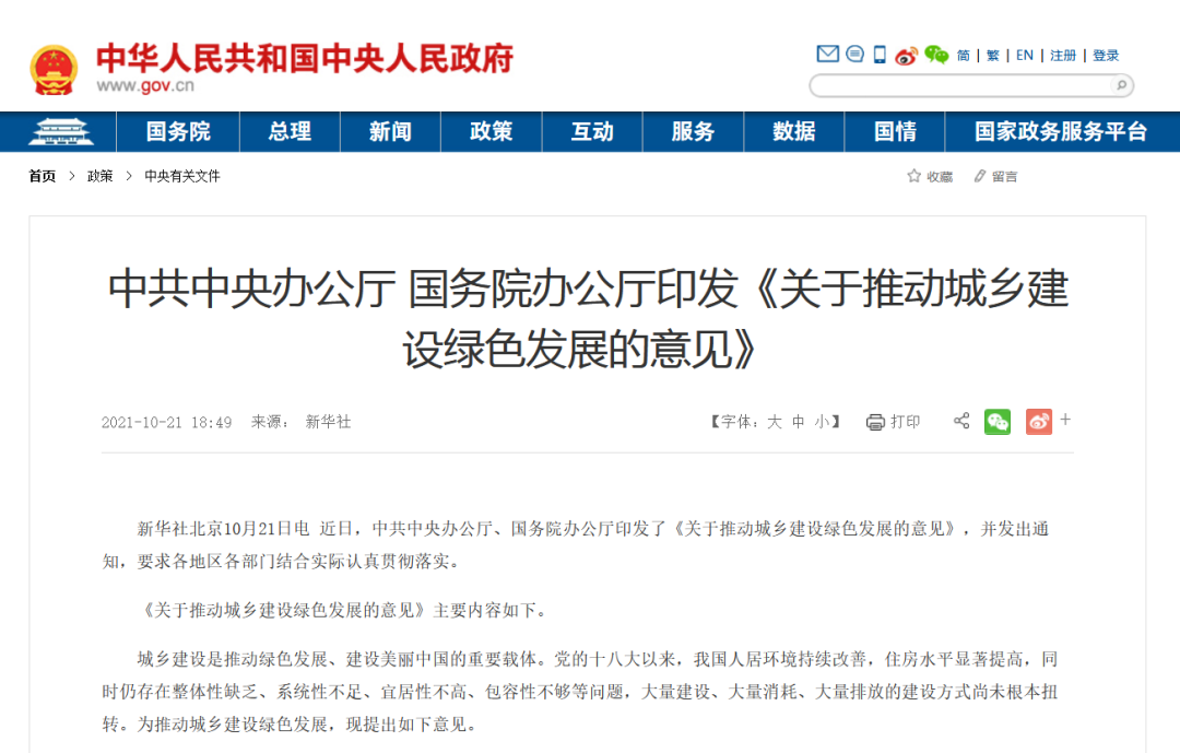 文章導(dǎo)讀《意見》提出,到2035年,城鄉(xiāng)建設(shè)全面實現(xiàn)綠色發(fā)展,碳減排水平快速提升,城市和鄉(xiāng)村品質(zhì)全面提升,人居環(huán)境更加美好,城鄉(xiāng)建設(shè)領(lǐng)域治理體系和治理能力基本實現(xiàn)現(xiàn)代化,美麗中國建設(shè)目標(biāo)基本實現(xiàn)。新華社北京10月21日電 近日,中共中央辦公廳、國務(wù)院辦公廳印發(fā)了《關(guān)于推動城鄉(xiāng)建設(shè)綠色發(fā)展的意見》,并...