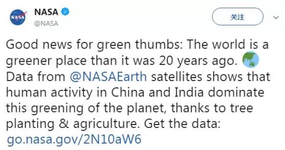 NASA稱,中國(guó)和印度的行動(dòng)主導(dǎo)了地球變綠。▲NASA推特截圖2月12日,美國(guó)國(guó)家航空航天局(NASA)在社交媒體上發(fā)文稱,“好消息:相比20年前,世界變得更‘綠色’了。‘NASA地球’的衛(wèi)星顯示,發(fā)生在中國(guó)和印度的人類活動(dòng)主導(dǎo)了這次地球變綠,感謝植樹造林和農(nóng)業(yè)種植?!盢ASA官網(wǎng)文章介紹,地球現(xiàn)在...