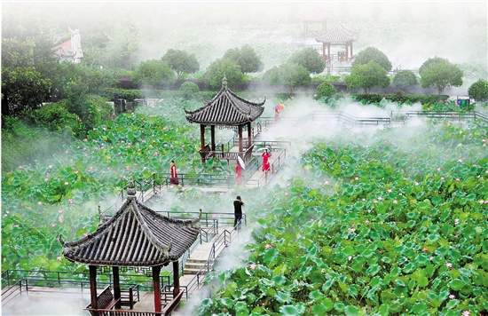 7月16日清晨6時(shí),陽光灑向永康市舟山鎮(zhèn)端巖村端頭自然村的荷塘。攝影愛好者徐恭強(qiáng)來了:“今天5點(diǎn)起床,特意從城里趕過來拍照。”看著薄霧慢慢升起,他舉起相機(jī),定格美好瞬間?!白疃鄷r(shí),同時(shí)有180個(gè)攝影師來拍荷塘!”端巖村黨支部書記俞海從荷塘中央的連廊走來,滿臉自豪。端頭村是個(gè)僅有146戶、398人的小...
