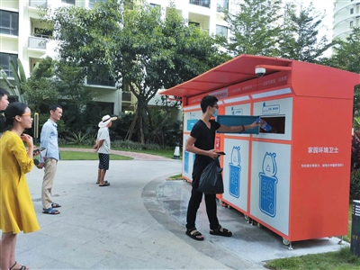居民正在使用智能垃圾分類柜投放垃圾。符吉茂 攝“既環(huán)保,又能換錢,還能提高我們的垃圾分類意識(shí)和分類正確率,一舉多得,這個(gè)智能垃圾分類柜值得點(diǎn)贊?!?月26日,家住崖州區(qū)保利·崖州灣小區(qū)居民候東將一個(gè)礦泉水瓶投進(jìn)“大胃貓”智能垃圾分類柜后笑著說。日前,為助力三亞市生活垃圾分類工作,建設(shè)“無廢城市”,崖...