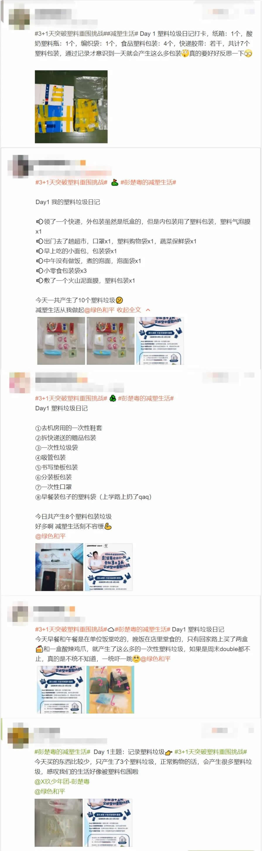 由綠色和平減塑生活代言人彭楚粵與綠色和平共同發(fā)起的“3+1天突破塑料重圍挑戰(zhàn)”,已經(jīng)正式開始啦!第一天的挑戰(zhàn)主題“塑料垃圾日記”——記錄身邊一天產(chǎn)生的一次性塑料垃圾,讓許多小伙伴們意識到,原來每天產(chǎn)生的生活垃圾中很多都是一次性塑料。尤其是快遞、外賣和超市里無處不在的一次性的塑料包裝。參與#3+1天突...