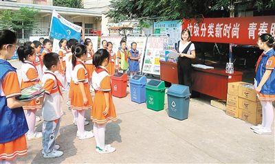 宣講員在為小學(xué)生講解垃圾分類常識(shí)。(資料圖片)16日,西安市政府關(guān)于市十六屆人大常委會(huì)第二十八次會(huì)議對(duì)全市生活垃圾分類管理情況報(bào)告審議意見的研究處理情況報(bào)告,提交市十六屆人大常委會(huì)第三十二次會(huì)議審議。記者從報(bào)告獲悉,去年以來(lái),全市加快末端設(shè)施建設(shè),西咸、鄠邑兩個(gè)垃圾焚燒場(chǎng)項(xiàng)目正在加緊收尾工作,加快推...