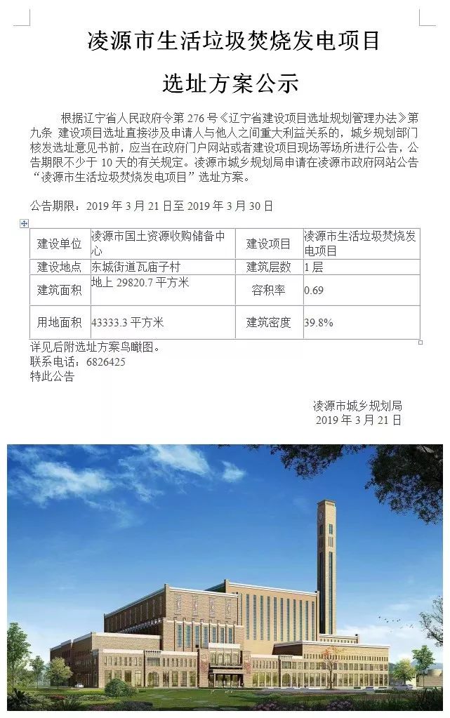 日前,從凌源政府網(wǎng)通知公告發(fā)布獲悉,為改善城市生態(tài)環(huán)境,解決生活垃圾處理困境,凌源市將建設(shè)一座生活垃圾焚燒發(fā)電廠。目前,該項目前期工作正在有序推進。我市生活垃圾焚燒處置項目是我市環(huán)境治理的重要組成部分,選址于東城街道瓦廟子村,建筑層數(shù)1層,地上建筑面積29820.7平方米,用地面積43333.3平方...