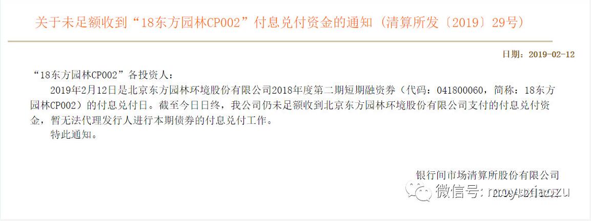市場再次大漲,股民們都沉浸在喜悅之中,但是債券投資人今天傍晚卻被一則公告嚇得不輕。上海清算所發(fā)布公告說,未足額收到東方園林發(fā)行的規(guī)模5個億“18東方園林CP002”的付息兌付資金,市場一片嘩然。東方園林去年因為債務(wù)問題一度處在風(fēng)口浪尖上,最后紓困基金爸爸出手才幸免于難。這都上岸了,今年咋就還不上錢了...