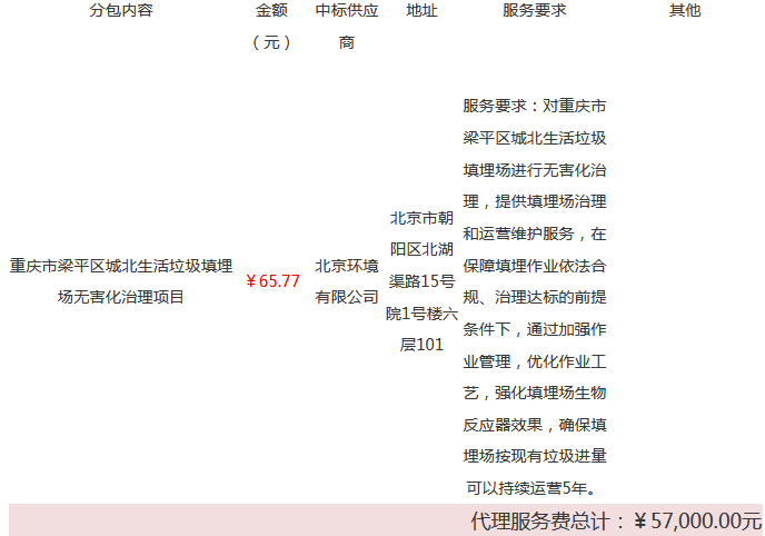 重慶市梁平區(qū)城北生活垃圾填埋場無害化治理項目(19C0015)結(jié)果公告發(fā)布日期: 2019年2月1日一、項目號:19C0015二、項目名稱:重慶市梁平區(qū)城北生活垃圾填埋場無害化治理項目三、采購方式:公開招標四、評審日期: 2019年1月31日五、公告日期: 2019年2月1日六、中標結(jié)果分包號:1七...