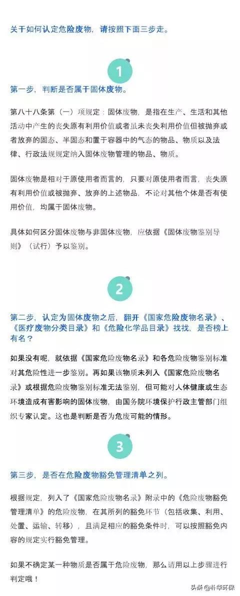 危險廢物的定義:根據(jù)《中華人民共和國固體廢物污染環(huán)境防治法》和《危險廢物經(jīng)營許可證管理辦法》,危險廢物是指列入《國家危險廢物名錄》或者根據(jù)國家規(guī)定的危險廢物鑒別標準和鑒別方法認定的具有危險特性的固體廢物。該定義包括兩個方面的含義,一是危險廢物屬于固體廢物的一部分(換言之,某種物質(zhì)如果不屬于固體廢物,...