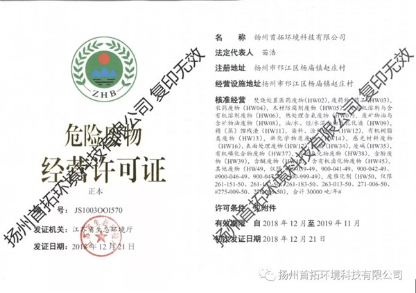 12月26日,首創(chuàng)環(huán)境揚(yáng)州危險廢物處置項目(揚(yáng)州首拓環(huán)境科技有限公司)順利取得由江蘇省生態(tài)環(huán)境廳頒發(fā)的《危險廢物經(jīng)營許可證》,這標(biāo)志著首創(chuàng)環(huán)境在危廢處置產(chǎn)業(yè)的海洋中揚(yáng)帆起航,再續(xù)新篇章。申領(lǐng)《危險廢物經(jīng)營許可證》是國家對危險廢物經(jīng)營處置企業(yè)行政許可的管理要求,也是危廢處置行業(yè)中所需資料最多、辦理流程...