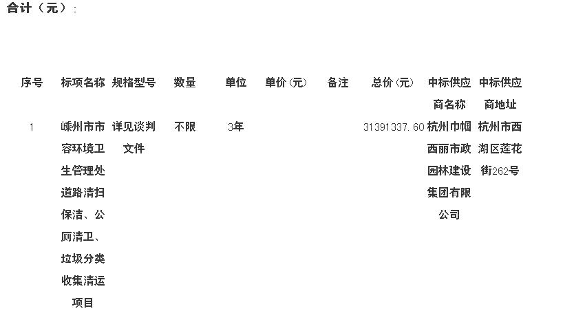 嵊州市公共資源交易中心關(guān)于嵊州市市容環(huán)境衛(wèi)生管理處道路清掃保潔、公廁清衛(wèi)、垃圾分類收集清運項目的結(jié)果公告一、 采購人名稱:嵊州市市容環(huán)境衛(wèi)生管理處二、 采購項目名稱:嵊州市市容環(huán)境衛(wèi)生管理處道路清掃保潔、公廁清衛(wèi)、垃圾分類收集清運項目三、 采購項目編號:szc2018-71四、 采購組織類型:政府集...
