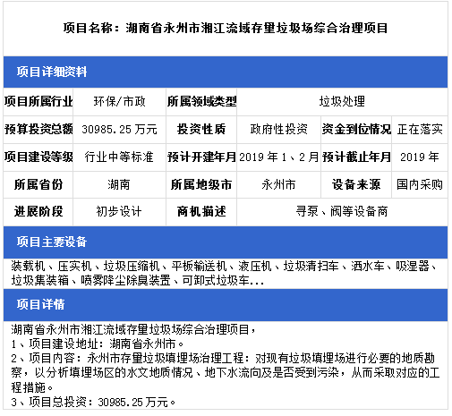 中項網(wǎng)獨(dú)家授權(quán)北極星固廢網(wǎng)發(fā)布最新垃圾處理項目(2018年12月18日更新),其中包括生活垃圾無害化處理設(shè)置建設(shè)項目、農(nóng)村生活垃圾治理項目、生活垃圾衛(wèi)生填埋場項目等。具體內(nèi)容如下: