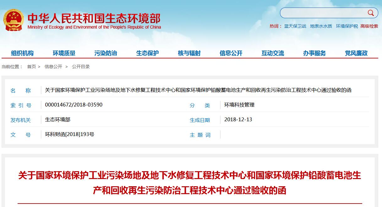 日前,生態(tài)環(huán)境部發(fā)布了關(guān)于國家環(huán)境保護(hù)工業(yè)污染場地及地下水修復(fù)工程技術(shù)中心和國家環(huán)境保護(hù)鉛酸蓄電池生產(chǎn)和回收再生污染防治工程技術(shù)中心通過驗收的函,詳情如下:中國節(jié)能環(huán)保集團(tuán)有限公司,超威電源有限公司:按照《國家環(huán)境保護(hù)工程技術(shù)中心管理辦法》(以下簡稱《管理辦法》)的有關(guān)規(guī)定,我部組織專家組對國家環(huán)境...