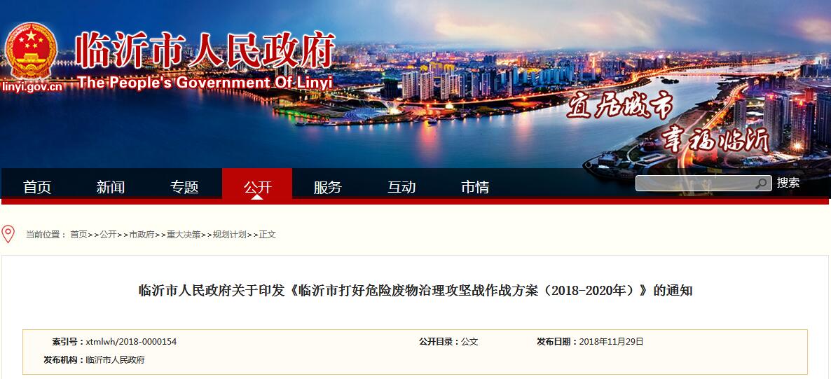 日前,山東臨沂印發(fā)《臨沂市打好危險(xiǎn)廢物治理攻堅(jiān)戰(zhàn)作戰(zhàn)方案(2018-2020年)》,詳情如下:臨沂市人民政府關(guān)于印發(fā)《臨沂市打好危險(xiǎn)廢物治理攻堅(jiān)戰(zhàn)作戰(zhàn)方案(2018-2020 年)》的通知臨政字〔2018〕183 號(hào)各縣區(qū)人民政府,市政府各部門、各直屬機(jī)構(gòu),臨沂高新技術(shù)產(chǎn)業(yè)開(kāi)發(fā)區(qū)管委會(huì),臨沂經(jīng)濟(jì)技術(shù)...