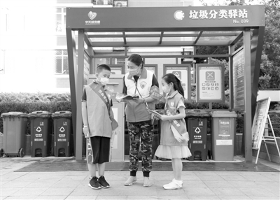 在北京市海淀區(qū)新科祥園社區(qū),社區(qū)工作人員(中)為“綠色明天”環(huán)保志愿小隊(duì)隊(duì)員李夢(mèng)鴻一(右)、施柏涵介紹垃圾分類知識(shí)。新華社記者 任超攝住建部、生態(tài)環(huán)境部等6部委近日聯(lián)合印發(fā)《綠色社區(qū)創(chuàng)建行動(dòng)方案》(以下簡(jiǎn)稱《方案》),要求綠色社區(qū)創(chuàng)建要與居民自治機(jī)制建設(shè)、社區(qū)服務(wù)體系建設(shè)有機(jī)結(jié)合起來,營(yíng)造社區(qū)宜居環(huán)...