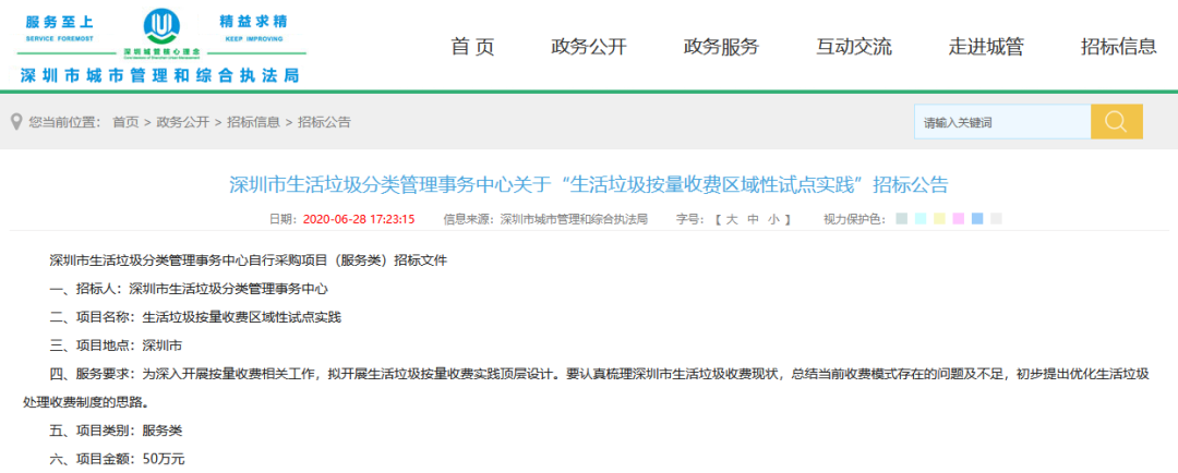 文章導(dǎo)讀6月,深圳市啟動“生活垃圾按量收費區(qū)域性試點實踐項目”公開招標(biāo)。按計劃,中標(biāo)人將于12月10日提交項目成果。9月1日,有著里程碑式意義的《深圳市生活垃圾分類管理條例》開始實施,宣告深圳垃圾分類進(jìn)入法治強(qiáng)制時代。《條例》授權(quán)深圳市人民政府按照“誰產(chǎn)生誰付費和差別化收費”的原則,逐步建立計量收費...
