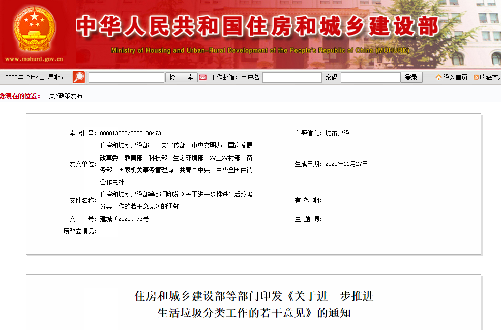 文章導(dǎo)讀12月4日,住建部、中共中央委員會宣傳部等12部門印發(fā)《關(guān)于進(jìn)一步推進(jìn)生活垃圾分類工作的若干意見》的通知(以下簡稱《通知》)。《通知》全文如下:住房和城鄉(xiāng)建設(shè)部等部門印發(fā)《關(guān)于進(jìn)一步推進(jìn)生活垃圾分類工作的若干意見》的通知各省、自治區(qū)、直轄市人民政府,中央和國家機(jī)關(guān)有關(guān)部門、單位:《關(guān)于進(jìn)一步...