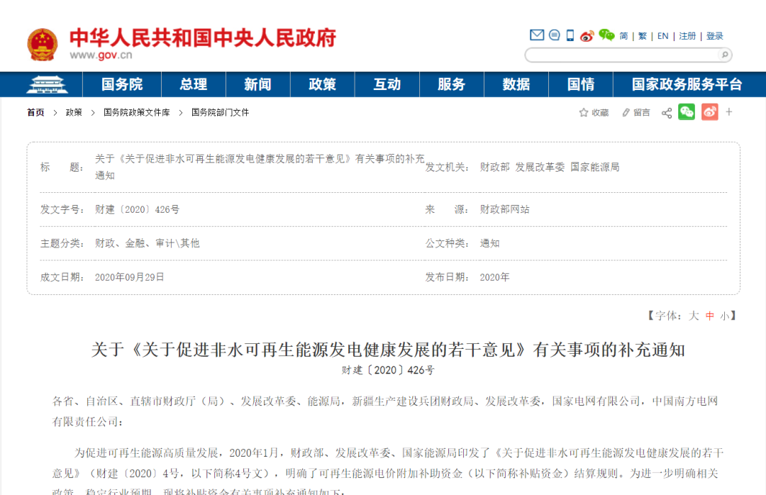 文章導(dǎo)讀為促進可再生能源高質(zhì)量發(fā)展,2020年1月,財政部、發(fā)展改革委、國家能源局印發(fā)了《關(guān)于促進非水可再生能源發(fā)電健康發(fā)展的若干意見》(財建〔2020〕4號,以下簡稱4號文),明確了可再生能源電價附加補助資金(以下簡稱補貼資金)結(jié)算規(guī)則。為進一步明確相關(guān)政策,穩(wěn)定行業(yè)預(yù)期,現(xiàn)將補貼資金有關(guān)事項補充...