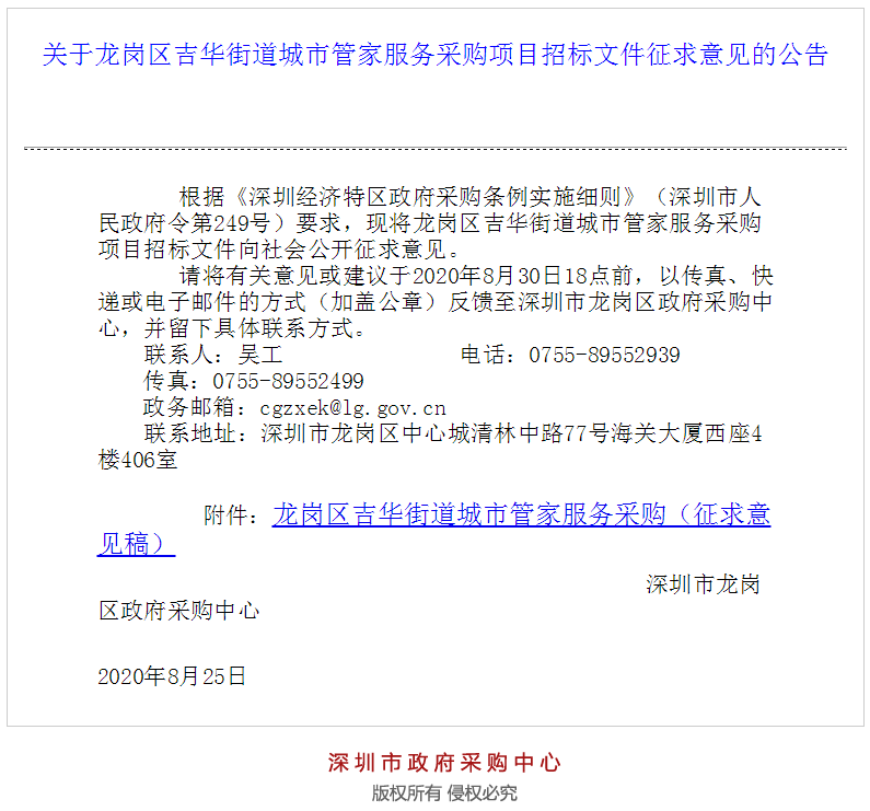 文章導(dǎo)讀2019年,深圳市政府計劃引進“城市管家”概念,在此背景下,“物管城市”模式開始浮出水面,基本思路為:統(tǒng)籌整合環(huán)境衛(wèi)生、綠化管養(yǎng)、市容管控、數(shù)字化城管等城市管理服務(wù),委托專業(yè)的物管企業(yè)開展市政一體化運營,構(gòu)建“管理+服務(wù)+運營”的城市治理新模式。8月25日,深圳市政府采購中心發(fā)布“深圳市龍崗...