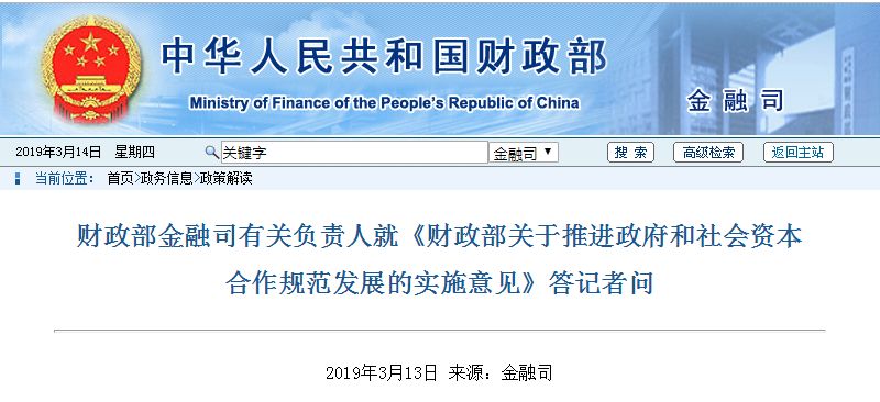文章導(dǎo)讀近日,財(cái)政部印發(fā)《關(guān)于推進(jìn)政府和社會(huì)資本合作規(guī)范發(fā)展的實(shí)施意見(jiàn)》(以下簡(jiǎn)稱(chēng)《實(shí)施意見(jiàn)》)。財(cái)政部金融司有關(guān)負(fù)責(zé)人就《實(shí)施意見(jiàn)》有關(guān)情況回答了記者的提問(wèn)。來(lái)源:財(cái)政部問(wèn):請(qǐng)介紹一下出臺(tái)《實(shí)施意見(jiàn)》的背景和主要目的?答:推廣政府和社會(huì)資本合作(PPP)模式,引導(dǎo)社會(huì)資本參與公共服務(wù)供給,是黨中央...