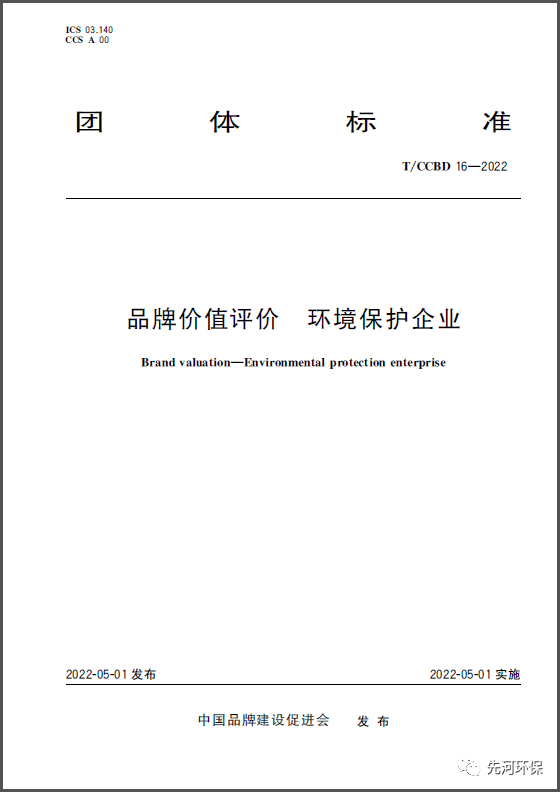 先河環(huán)保參與編制的《品牌價值評價 環(huán)境保護(hù)企業(yè)》團(tuán)體標(biāo)準(zhǔn)正式發(fā)布實施