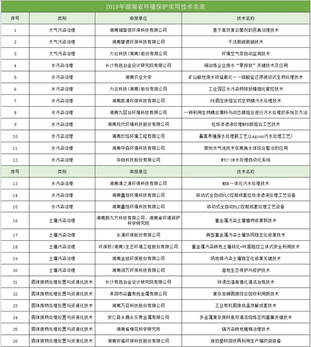 湖南省生態(tài)環(huán)境廳 湖南省科學(xué)技術(shù)廳關(guān)于發(fā)布2019年環(huán)境保護(hù)實(shí)用技術(shù)評(píng)選結(jié)果的通知 各市州生態(tài)環(huán)境局、科學(xué)技術(shù)局,各有關(guān)單位: 為發(fā)揮環(huán)??萍紕?chuàng)新引領(lǐng)作用,促進(jìn)環(huán)保實(shí)用技術(shù)的成果轉(zhuǎn)化和應(yīng)用,引導(dǎo)環(huán)保產(chǎn)業(yè)技術(shù)進(jìn)步,滿足排污單位對(duì)環(huán)保技術(shù)和產(chǎn)品的需求,促進(jìn)污染防治工作,省生態(tài)環(huán)境廳、省科學(xué)技術(shù)...