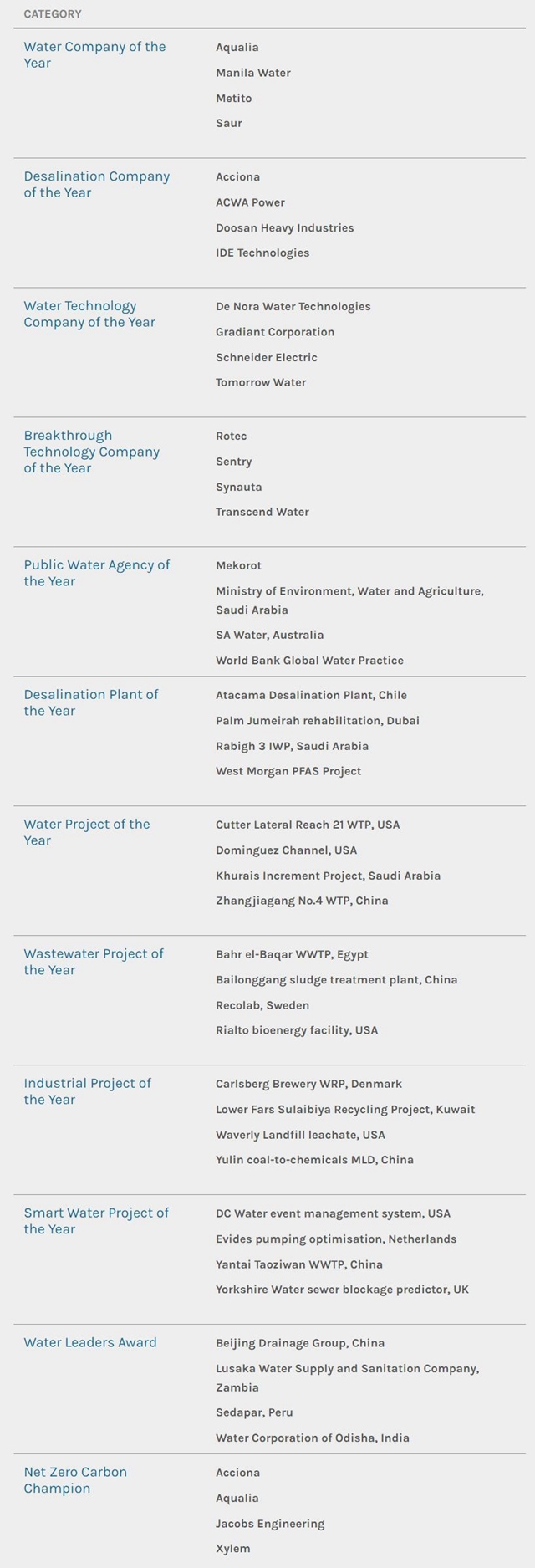 日前,GWI(Global Water Intelligence國際水務智庫)發(fā)布了“2022全球水獎”入圍名單,最終2022 Global Water Awards獲獎者將于5月17日的Global Water Summit上宣布。 入圍名單涉及海水淡化、水務科技、水務工程...