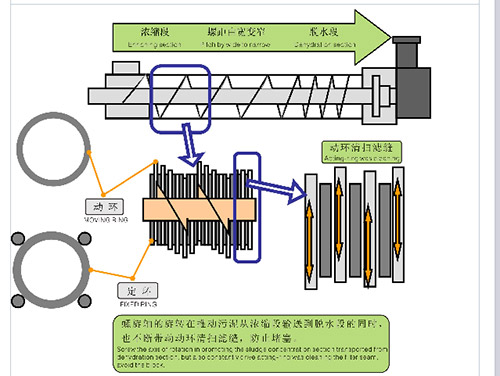 一、工作原理:的工作原理是由固定環(huán)和游動環(huán)的相互層疊,螺旋軸貫穿其中形成的過濾裝置推動。前端為濃縮部后端為脫水部。固定環(huán)和游動環(huán)之間形成的濾縫以及螺旋軸的螺距從濃縮部到脫水部逐漸變小。螺旋軸的旋轉(zhuǎn)在推動污泥從濃縮部到脫水部的同時,也不斷帶動游動環(huán)清掃濾縫,防止堵塞。污泥在濃縮不經(jīng)過重力濃縮后,被運輸...
