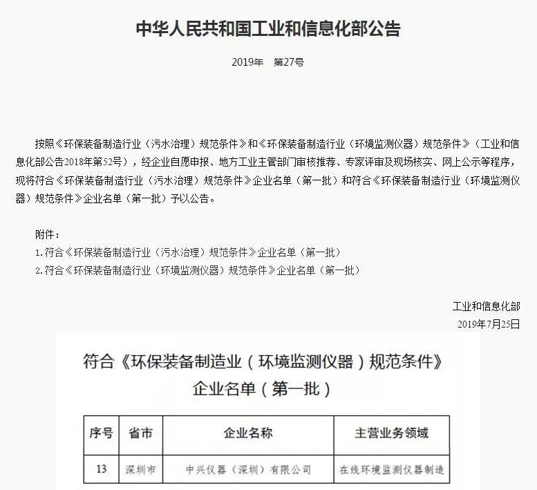 近日,中興儀器(深圳)有限公司(以下簡稱“中興儀器”)上榜首批符合“環(huán)保裝備制造業(yè)(環(huán)境監(jiān)測儀器)規(guī)范條件”企業(yè)名單。此評選活動(dòng)由中華人民共和國工業(yè)和信息化部舉辦,通過地方工業(yè)主管部門審核推薦、專家評審及現(xiàn)場核實(shí)、網(wǎng)上公示等程序。 作為領(lǐng)先的生態(tài)環(huán)境與...