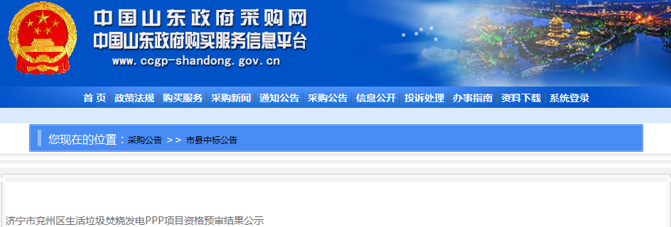 中國環(huán)聯(lián)網獲悉,11月27日,山東省濟寧市兗州區(qū)生活垃圾焚燒發(fā)電PPP項目發(fā)布資格預審結果公告。合格的申請人包括光大國際聯(lián)合體等三家企業(yè),具體名單如下:11月5日,該項目啟動資格預審,根據公告顯示,項目概況如下:建設內容和建設規(guī)模:本項目為濟寧市兗州區(qū)生活垃圾焚燒發(fā)電PPP項目,建設日處理垃圾150...