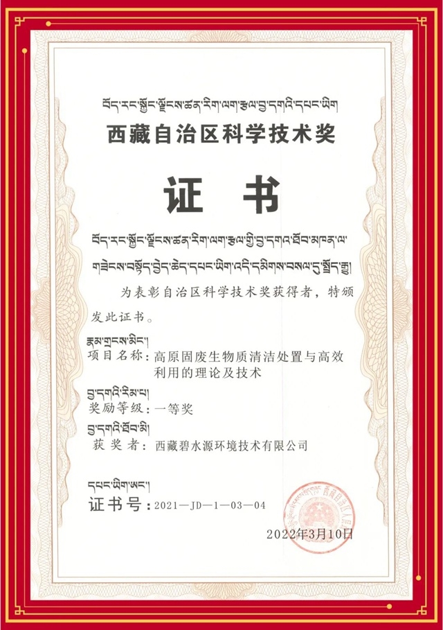近日,高科技環(huán)保企業(yè)碧水源控股子公司西藏碧水源環(huán)境技術(shù)有限公司(以下簡稱“西藏碧水源”)參與的科研項(xiàng)目《高原固廢生物質(zhì)清潔處置與高效利用的理論及技術(shù)》獲西藏自治區(qū)人民政府的通報(bào)表揚(yáng),被授予2021年度西藏自治區(qū)科學(xué)技術(shù)獎(jiǎng)一等獎(jiǎng)! 為深入貫徹習(xí)近平總書記關(guān)于科技創(chuàng)新、西藏工作的...