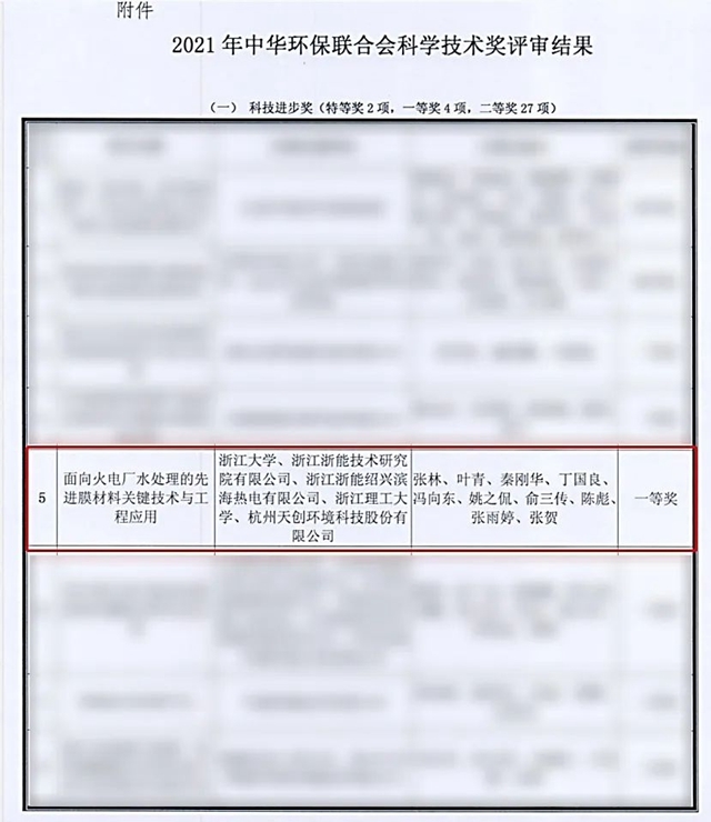 近日,由天創(chuàng)環(huán)境參與的“面向火電廠水處理的先進(jìn)膜材料關(guān)鍵技術(shù)及工程應(yīng)用”項(xiàng)目獲得中華環(huán)保聯(lián)合會(huì)“2021年度科學(xué)技術(shù)獎(jiǎng)”科技進(jìn)步獎(jiǎng)一等獎(jiǎng)! 項(xiàng)目介紹 本項(xiàng)目由浙江大學(xué)、浙江浙能技術(shù)研究院有限公司、浙江浙能紹興濱海熱電有限公司、浙江理工大學(xué)、杭州天創(chuàng)環(huán)境...