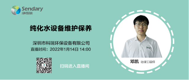 良好的維護保養(yǎng)是純化水設(shè)備長期穩(wěn)定運行及延長設(shè)備使用壽命的保障。2022年1月14日14:00,凈得瑞帶來的《純化水設(shè)備維護保養(yǎng)》直播分享,幫助大家快速了解純化水設(shè)備維護保養(yǎng)工作內(nèi)容以及如何有序開展工作。圖一 《純化水設(shè)備維護保養(yǎng)》(點擊圖片進入直播間) 純化水設(shè)備是保障生物制藥、醫(yī)療器械等行業(yè)用水...